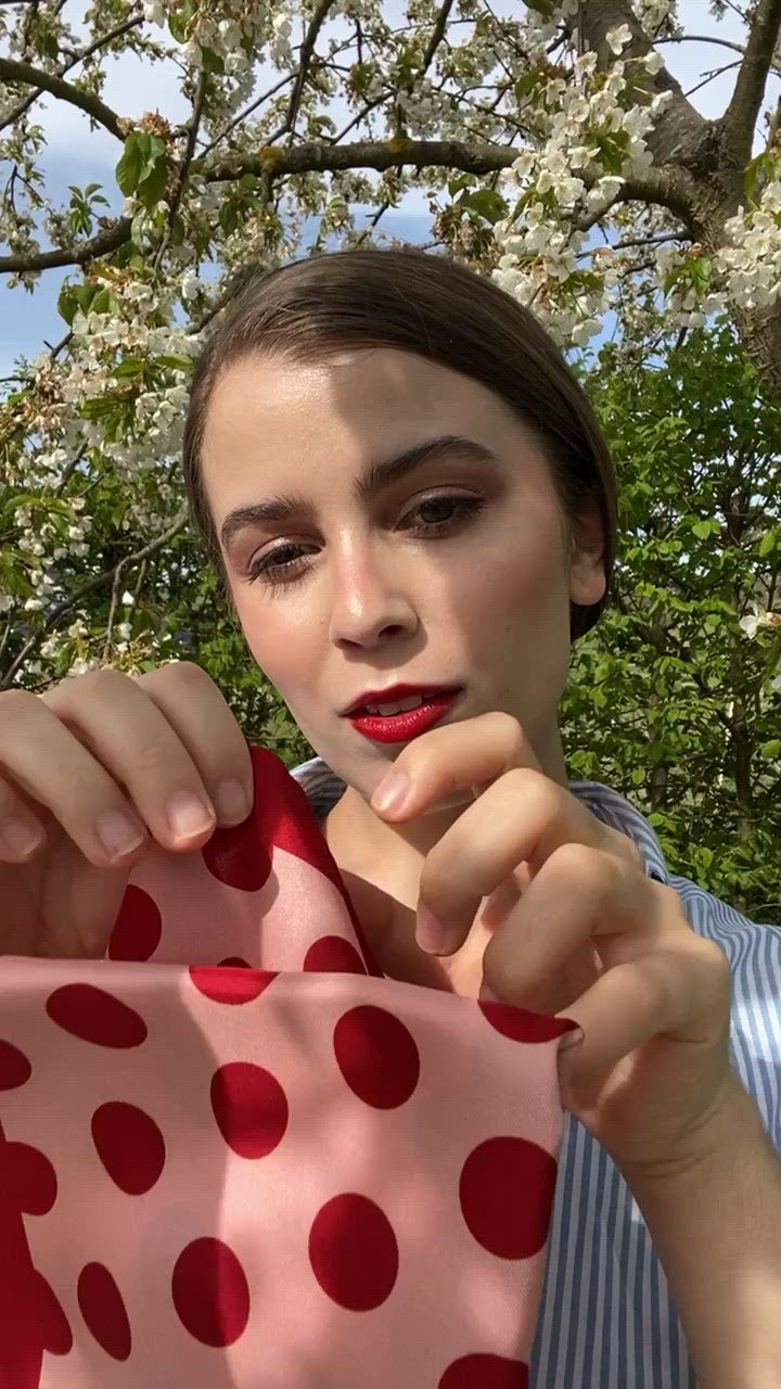 Single Dot Silk Scarf - Red & Pink